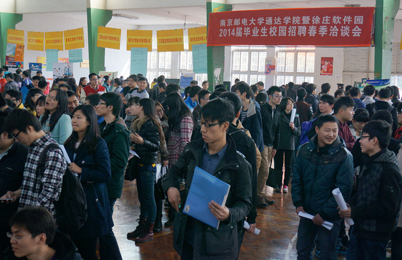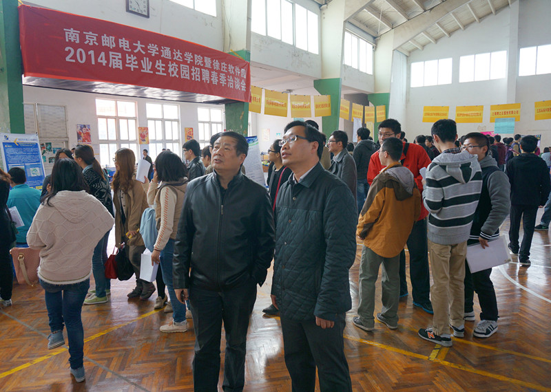 2014年面对严峻的就业形势,我院结合通信信息类院校的专业特点,精心筹划,在召开了30余场专场招聘会的基础上,又积极与南京徐庄软件园等用人单位联系,邀请了以徐庄软件园为主体的近50家企事业单位进校园,提供了涵盖我院20多个优势专业及专业方向的1000多个就业岗位,吸引了近千名毕业生到场应聘。