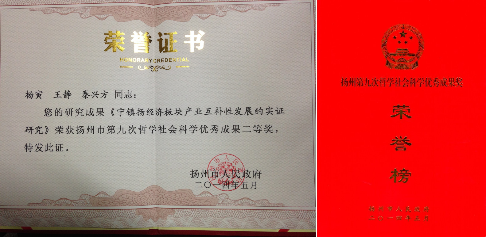日前,扬州市第九次哲学社会科学优秀成果奖评选揭晓,我院青年教师杨寅报送的研究成果《宁镇扬经济板块产业互补性发展的实证研究》荣获本次评选二等奖。