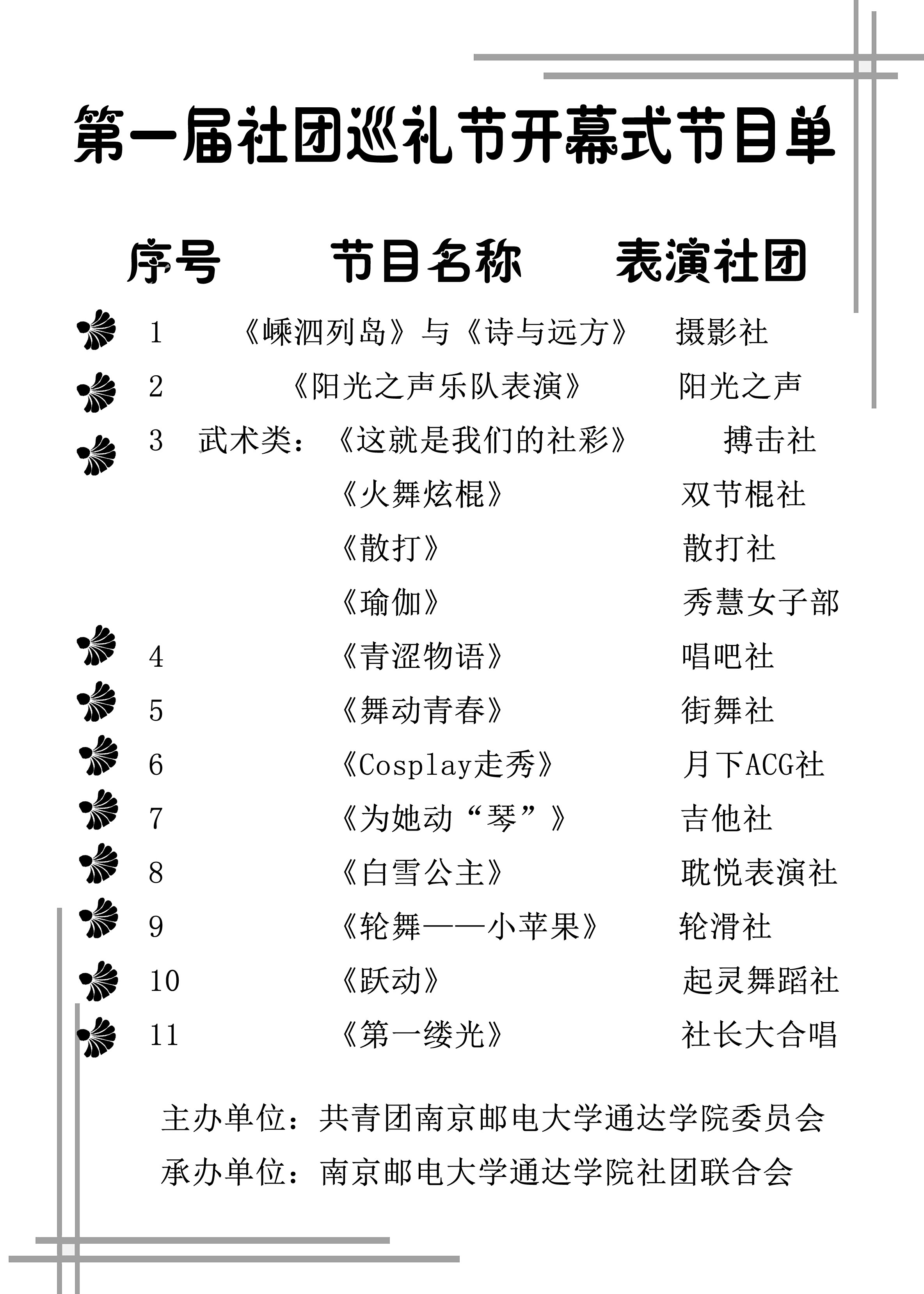 附:《第一届社团巡礼节开幕式节目单》