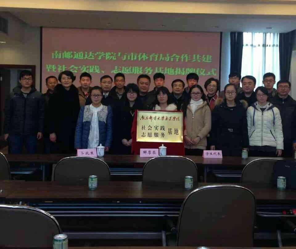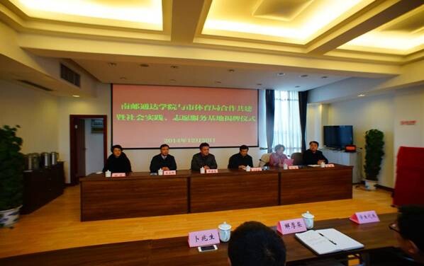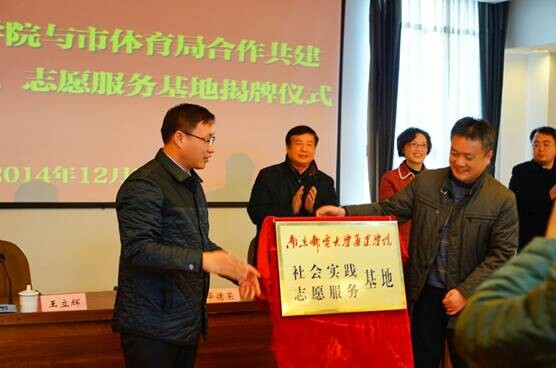 活动现场,双方首先进行了签字和揭牌仪式,南京邮电大学通达学院党委书记成际镇教授和扬州市体育局华德荣局长共同签署了合作共建意向书。南京邮电大学通达学院党委王立辉副书记和体育局华德荣局长共同为社会实践、志愿服务基地揭牌。