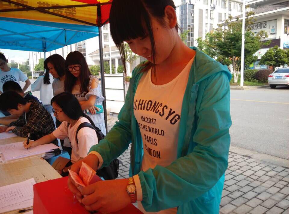 夏意浓浓,颗颗爱心像一阵阵暖流温暖每个人心田。为了积极响应扬州团市委的号召,积极开展“牵手希望·共圆梦想”2015希望工程微捐赠活动,南京邮电大学通达学院团委开展了“牵手希望·共圆梦想”——“关注留守儿童,捐助希望村塾”的爱心募捐活动。我院的阳光青年志愿者协会组织并全程参与了此次活动。积极谋划,广泛动员。为了做好本次募捐活动,营造“全民公益”、“人人公益”的文化氛围,学院学工处、团委专门印制了“关注留守儿童,捐助希望村塾”倡议书并发至各班级,多次主持召开辅导员和校级社团会议,以及通过微信、微博等新媒体平台努力推动此次募捐取得实效。阳光青年志愿者协会开展了为期三天的“爱心募捐,只为圆孩子一个梦”的宣传动员募捐活动,整个校园涌动着青春正能量。