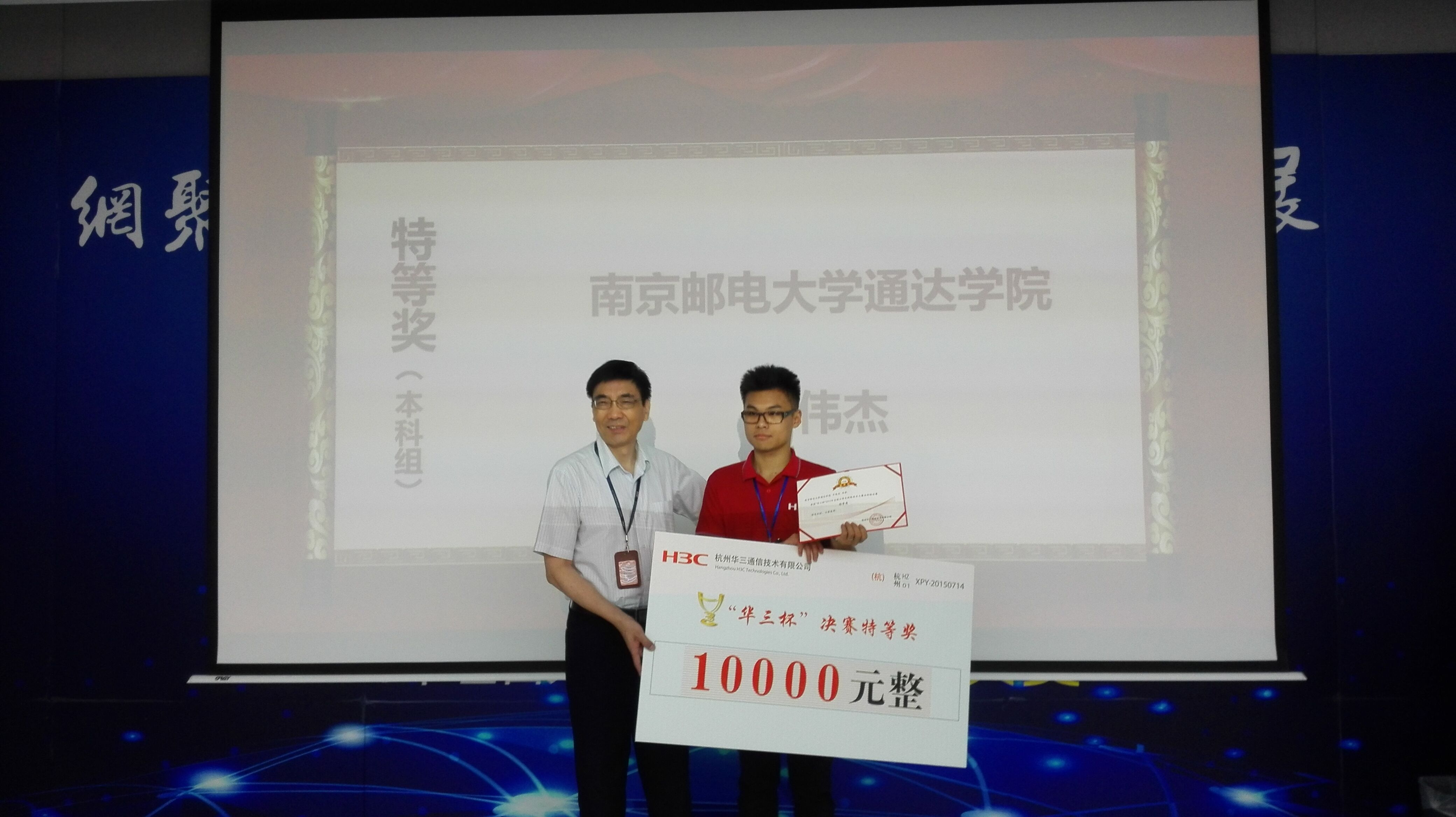 7月11日上午,2015年“华三杯”全国大学生网络技术大赛总决赛,在杭州华三通信技术有限公司总部拉开帷幕,经过3天激烈紧张的多角度技术角逐,最终,来自南京邮电大学通达学院H3C网院的牛伟杰同学夺得了本科组全国第1名并获得唯一特等奖。去年,该奖项第1名由我院学生孟世成取得。