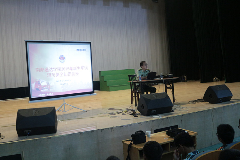 9月26日上午,保卫处邀请扬州市消防支队季秋荣科长为全体2015级新生开展消防安全知识讲座,季科长通过影像资料结合校园火灾的特点的形式,用通俗易懂的语言向新生们讲解了如何预防火灾、如何正确报警、如何扑救初期火灾、火灾中如何逃生、自救、疏散等消防安全常识,并通过现场互动的方式,零距离与学生们面对面交流,整场讲座气氛活泼,内容多彩,赢得全体新生的阵阵掌声。