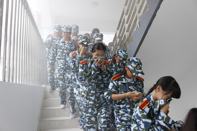 9月25日上午,保卫处联合军训团教官组织全体新生开展消防应急疏散演练。当消防警报声响起,军训教官、安保人员、等迅速到达指定位置。同学们用湿毛巾捂住口鼻,立即从宿舍快速有序的奔向走廊,并在疏散引导员的指引下,弯腰、沿安全通道快速撤离到安全集合点。