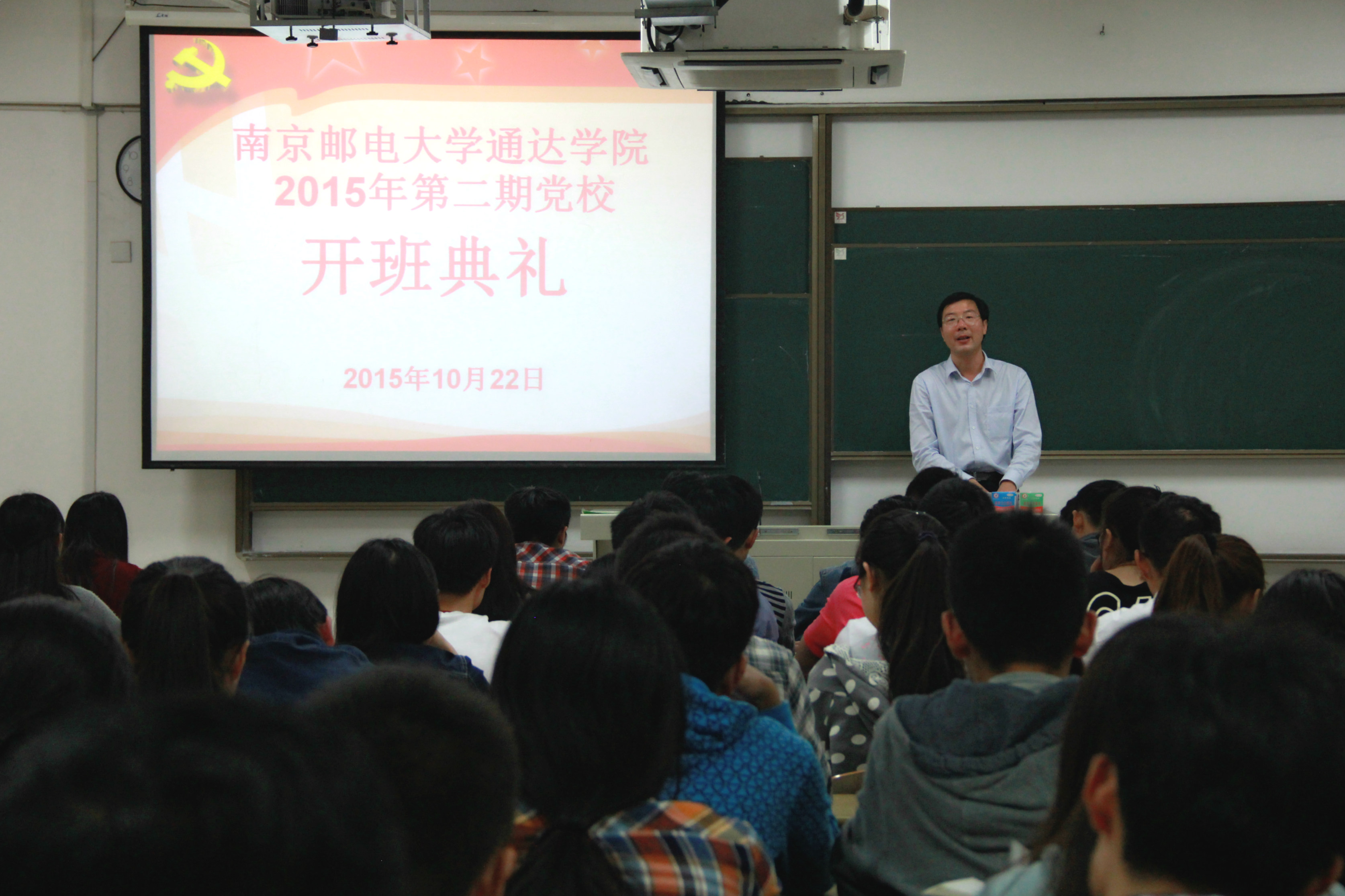 10月22日晚,南京邮电大学第281期暨通达学院2015年第二期入党积极分子培训班开班典礼在扬教1303隆重举行,全院106名入党积极分子参加了本期培训班。院党委书记戴兆骏、党办主任葛超、组织干事任建蕊、2012级、2013级辅导员出席开班典礼。开班典礼由党办主任葛超主持。