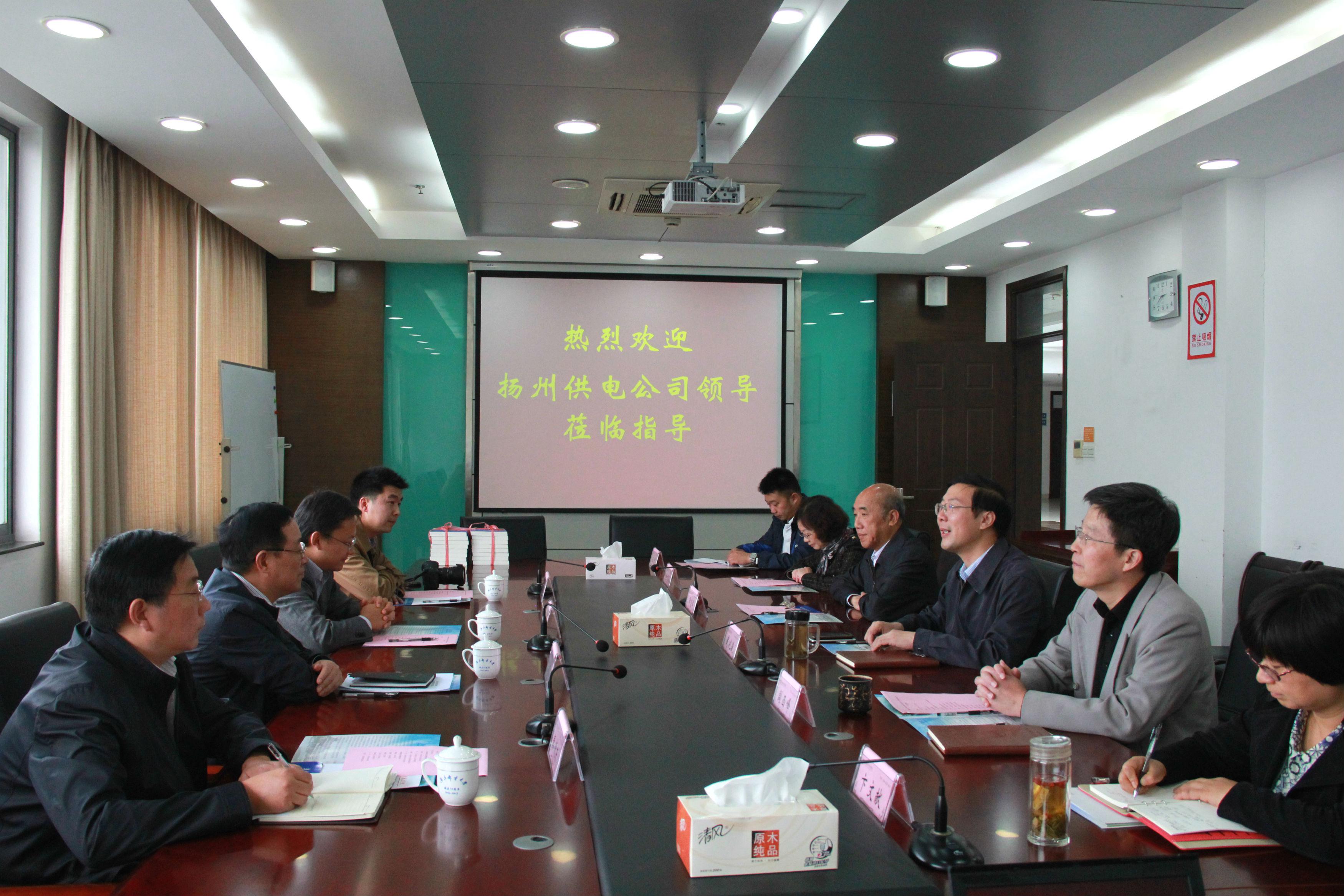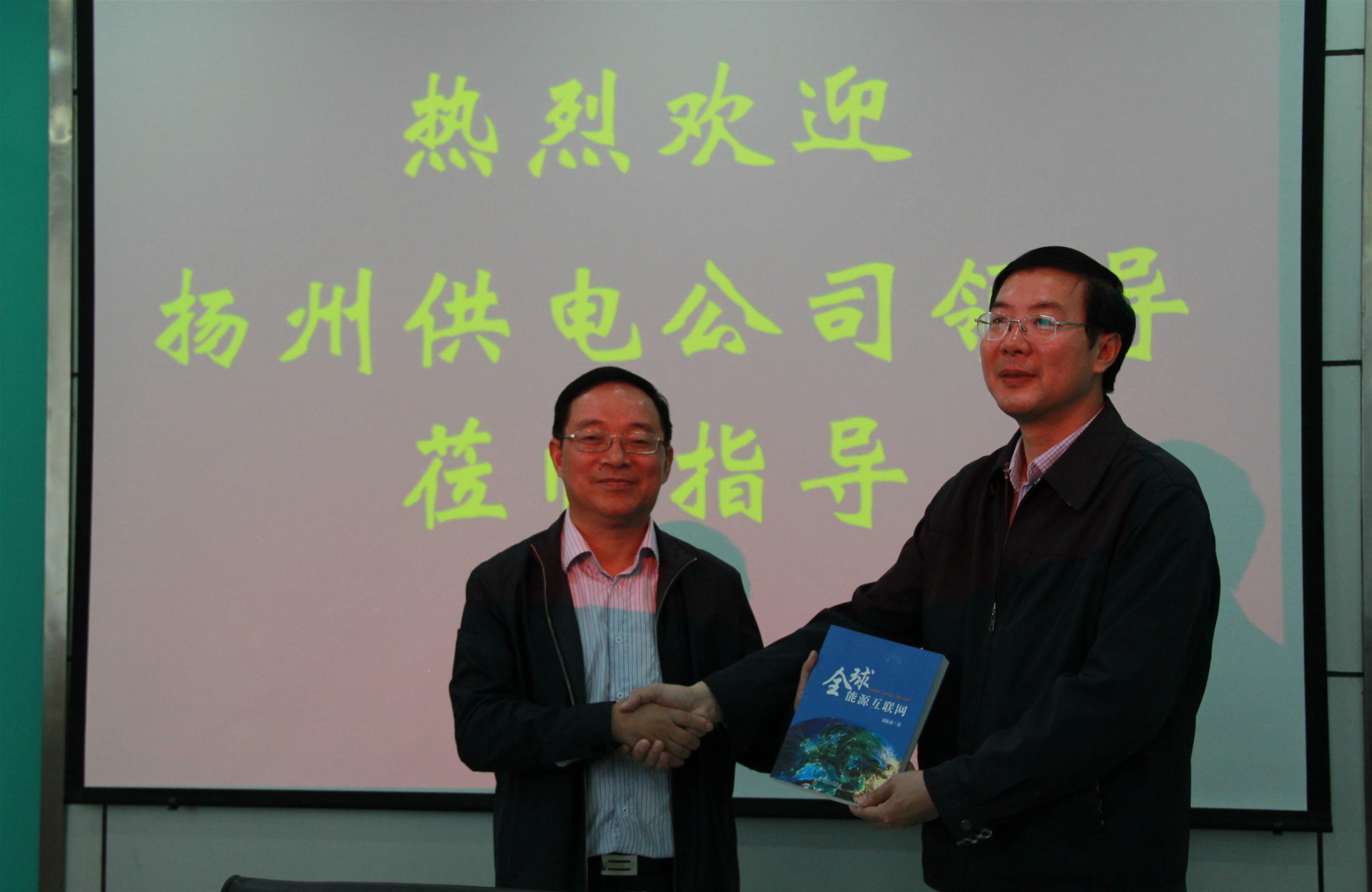 10月28日下午,国网扬州供电公司副总经理张映月、总经理助理沈飞、运维检修部主任秦晓东等一行4人到访我院交流座谈,并赠予国家电网公司董事长刘振亚的专著《全球能源互联网》。我院党委书记戴兆骏、常务副院长周西峰、副院长师崇群,以及图书馆、教务处、后勤管理处等相关部门负责人出席会议。会议由院党委书记戴兆骏主持。