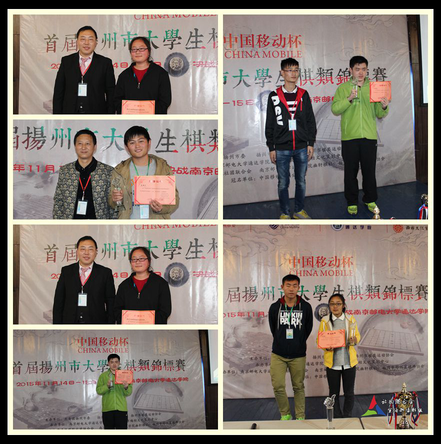 11月14-15日,由共青团扬州市委、扬州市学生联合会、扬州市棋类运动协会主办,南邮电大学通达学院团委、扬州市梅桔文化策划中心承办,我院社团联合会和幽轩棋社、扬州市邗江区棋牌协会协办的“中国移动杯”首届扬州市大学生棋类锦标赛在我院大学生活动中心二楼多功能厅成功举行。我院和扬州大学、扬州工业职业技术学院、扬州职业大学等4所高校参赛,参加选手约60人。
