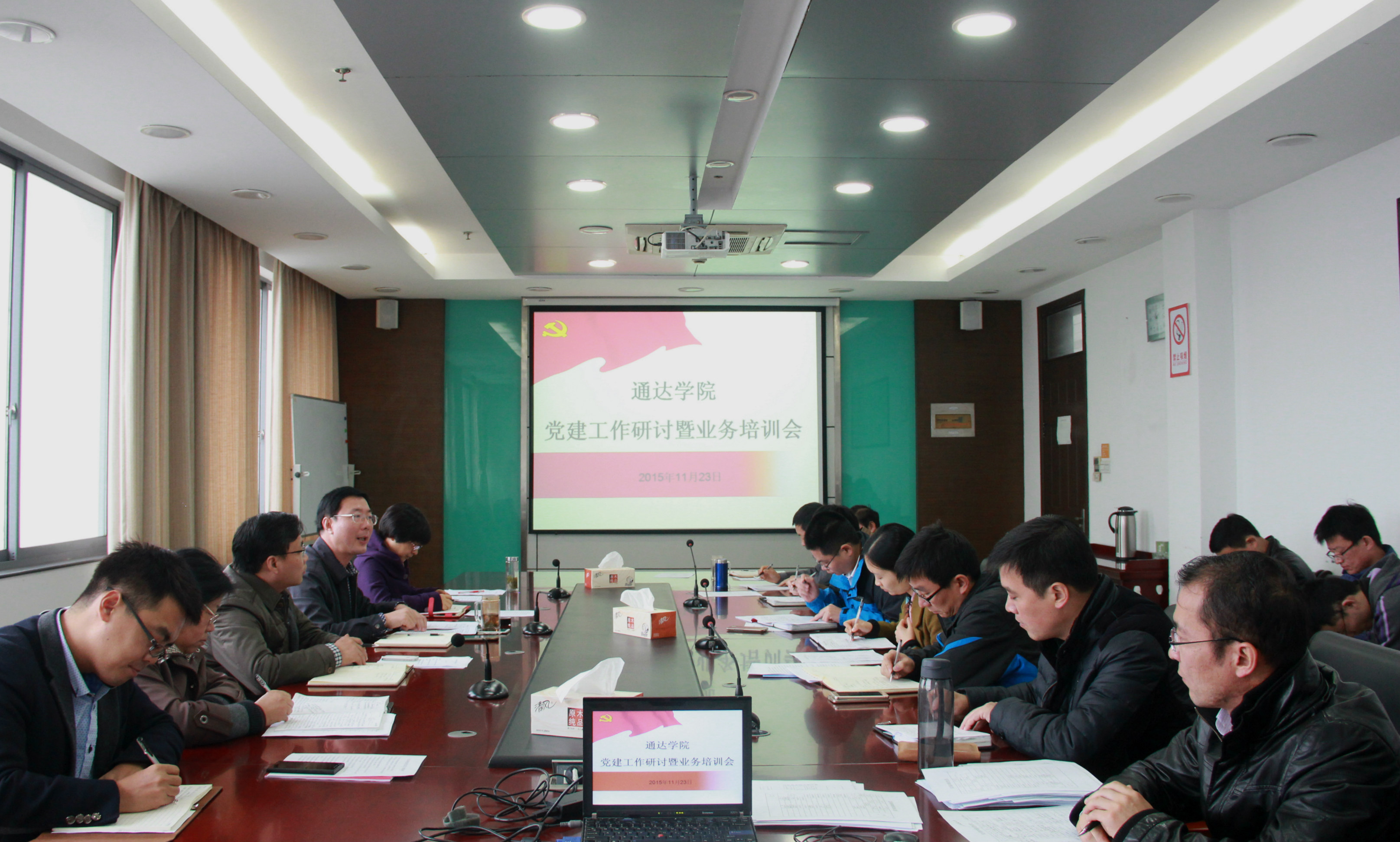 11月23日上午,我院在行政楼十楼会议室召开党建工作研讨暨业务培训会。院党委书记、副书记、党委委员、党办、学工处、团委负责人、组织干事和24个党支部的书记参加了会议。会议由院党委副书记王立辉主持。