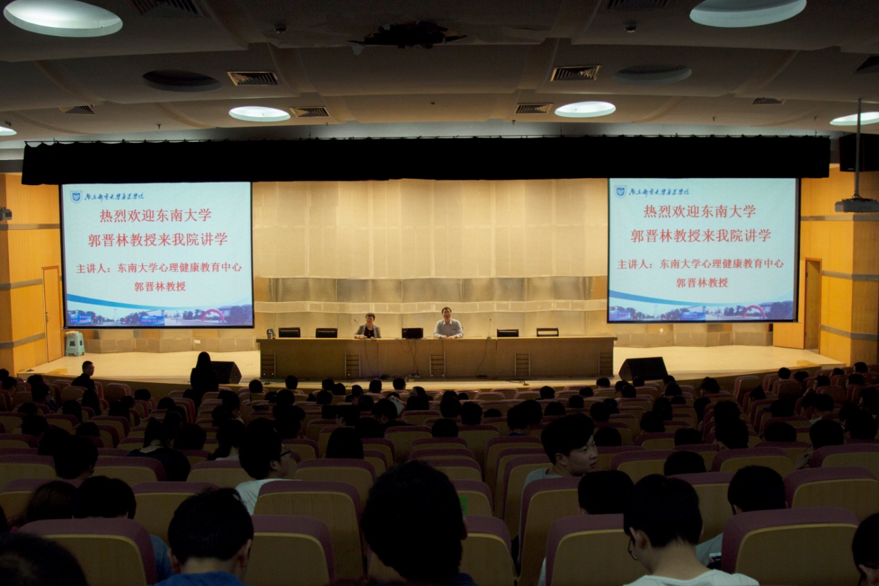 4月14日晚,江苏省大学生心理健康教育专家指导委员会委员、中国心理卫生协会注册心理督导师、江苏省心理学会大学生心理专业委员会副主任、东南大学郭晋林教授来我院作了“谈谈爱情那些事儿”的情感主题讲座。讲座由江苏省心理学会大学生心理专业委员会副主任、院党委书记戴兆骏主持,院党委副书记王立辉、学工线全体老师及500名左右学生听取了讲座。
