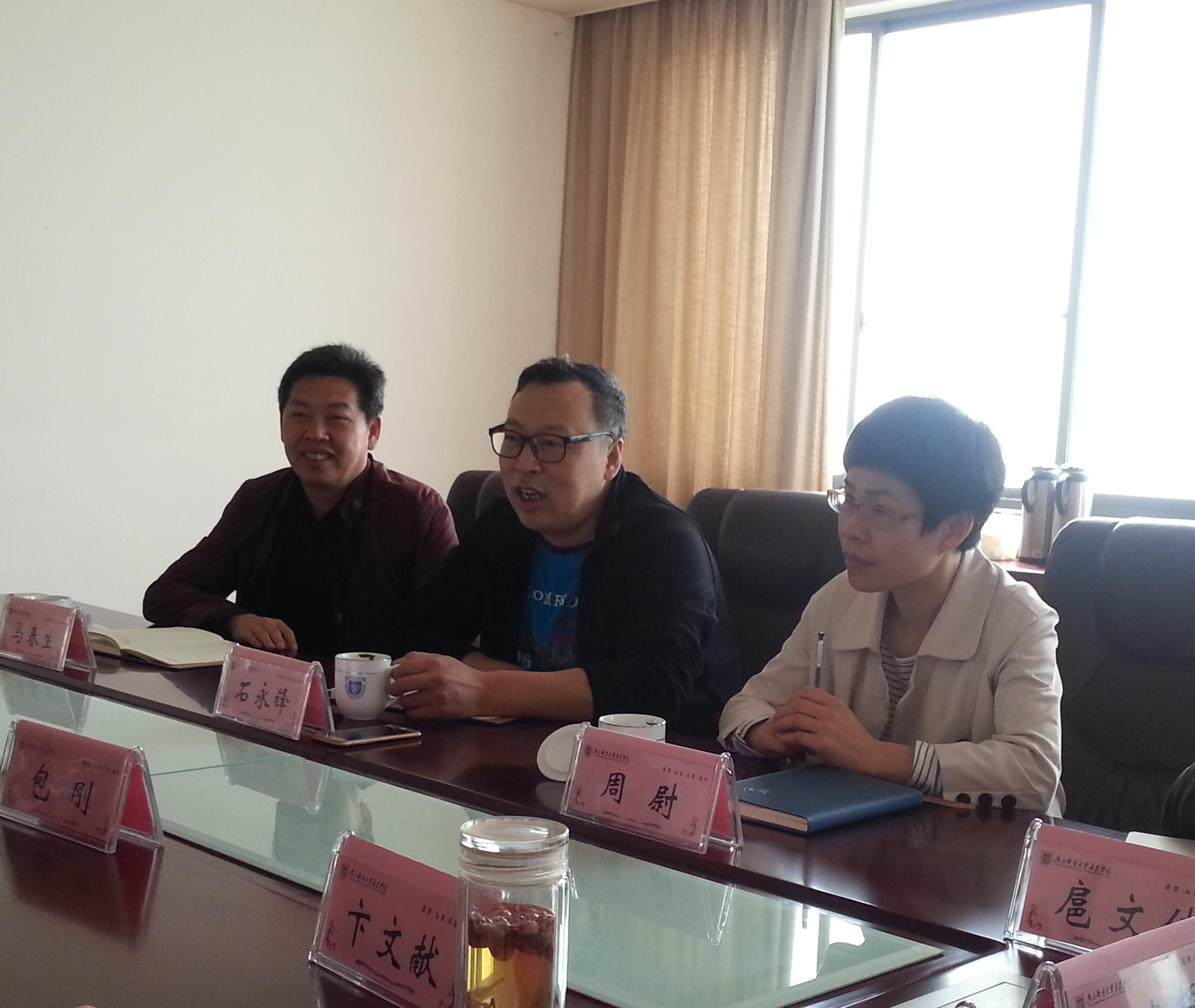 我院教学副院长包刚、教务处长卞文献、基础部副主任张颖及物理教研室主任陈波进行了热情接待。包刚副院长致欢迎辞,并向来访的领导和老师简要介绍了学院概况,教务处长卞文献介绍了我院的教师结构、教学管理情况、实验室建设情况及迁建办学的经验。双方还就基础部的教学科研情况、师资队伍建设、课程建设、教材建设、人才培养、数学建模建设、慕课MOOC利用情况等问题进行了热烈的交流和讨论。