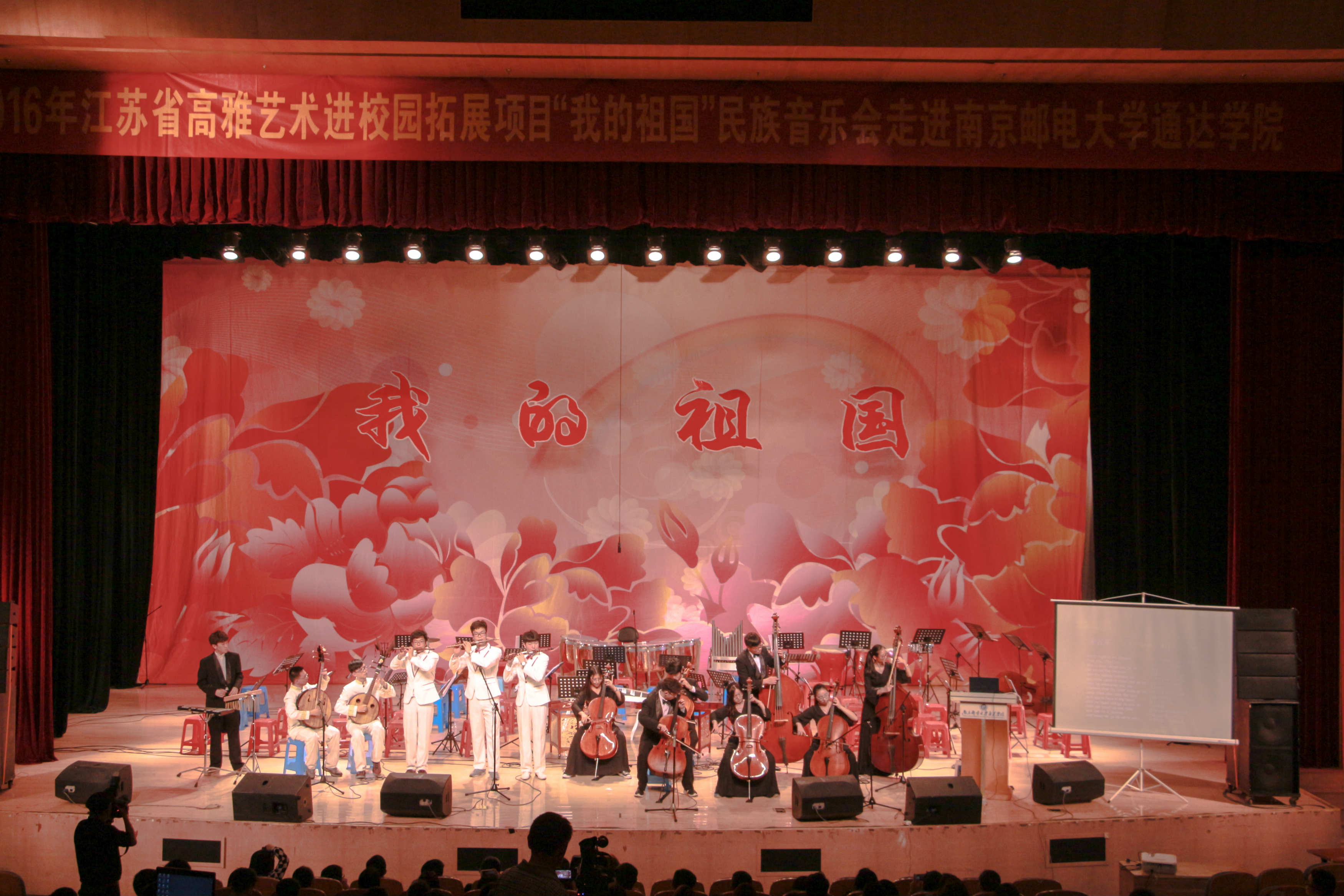 5月6日晚,2016年高雅艺术进校园拓展项目《我的祖国》民族音乐会在我院大学生活动中心大礼堂演出。《我的祖国》民族音乐会由江苏省委宣传部、江苏省教育厅、江苏省财政厅主办,南京理工大学和我院承办,为我院师生献上了一台精彩的音乐盛宴。