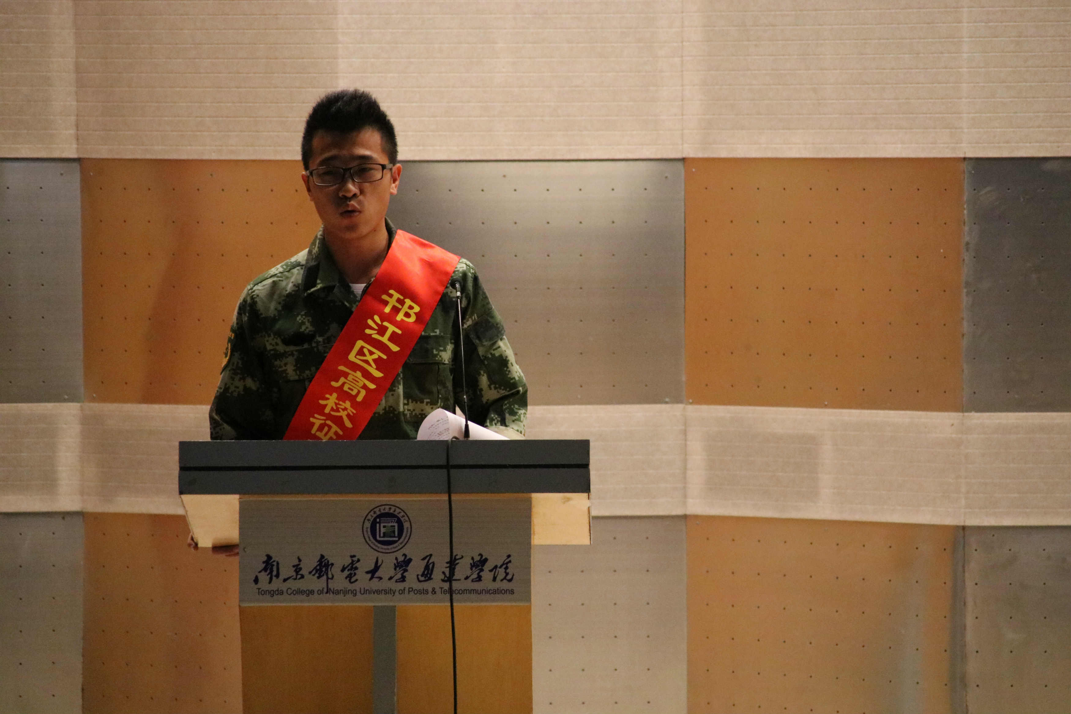 会上,我院退伍复学的储鸿伟同学代表大学生征兵宣传员发言,随后4名扬州其他高校大学生征兵宣传员进行了宣讲,最后邗江区委常委、区征兵领导小组副组长、人武部政委王公锋作了动员讲话。