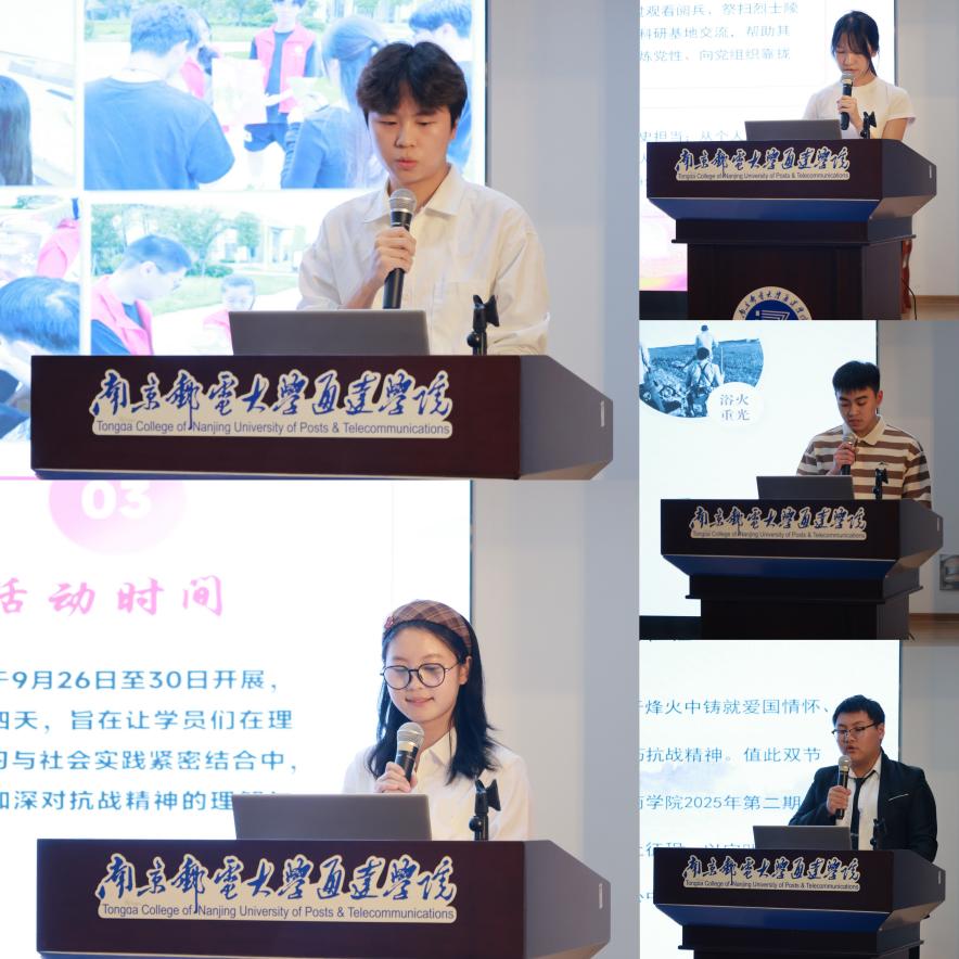 培训围绕《中国共产党章程》、习近平新时代中国特色社会主义思想、党的二十大及二十届三中全会精神、党的基本知识和发展党员程序,设置八场专题课程,助力学员端正入党动机、明晰入党步骤。各二级学院党总支以“赓续抗战精神,礼赞盛世华诞”为主题,开展观看抗战影片、瞻仰烈士陈列馆、与新生或老兵对话、走进小学创作爱国作品等实践活动。结业典礼上,5名学员代表汇报实践情况,现场评委打分。