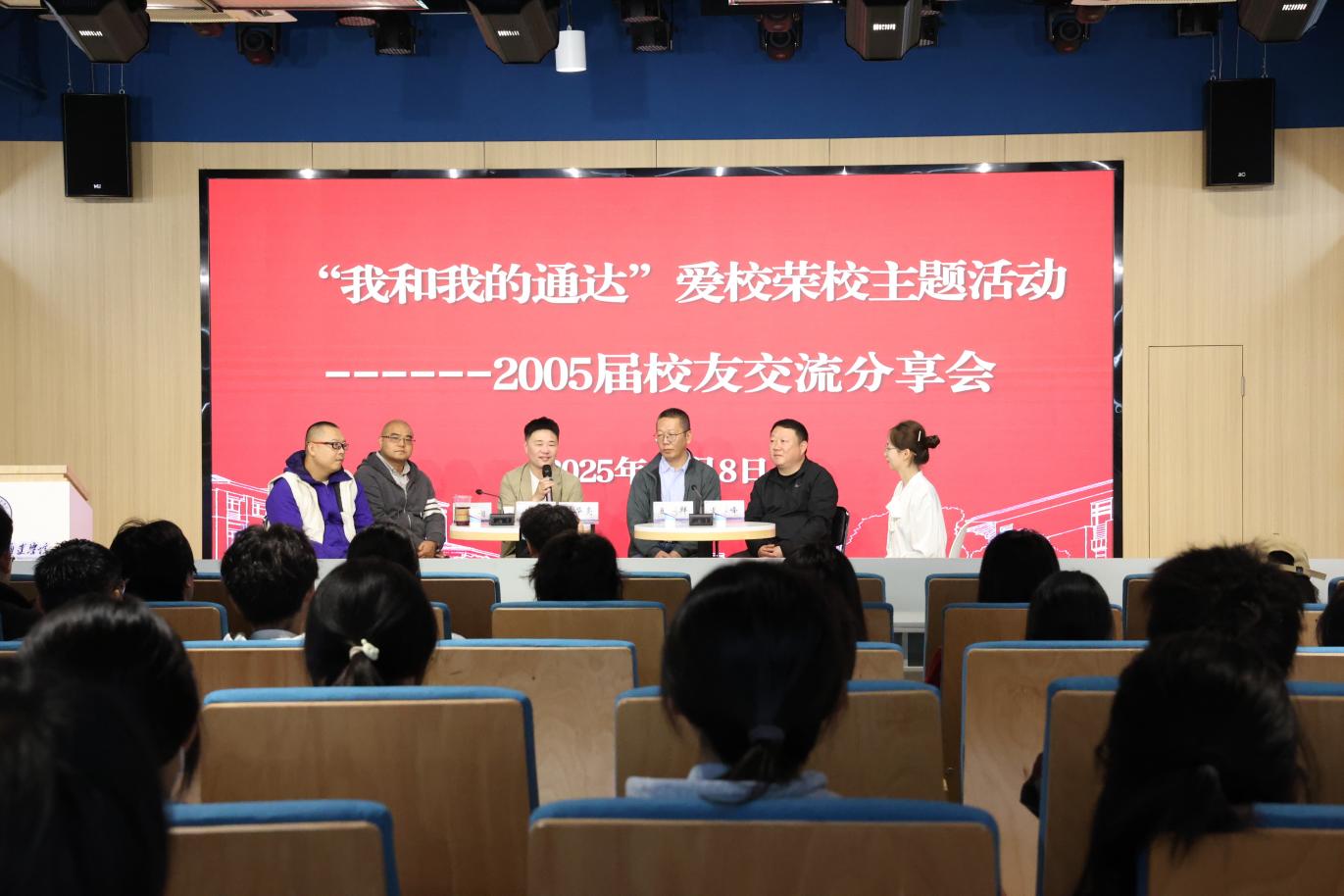 会议室的温情氛围尚未褪去,路演大厅的“我和我的通达”爱校荣校主题交流分享会已热闹开启。5位校友代表结合自身经历,为在校学生带来了一场干货满满的“成长课”,现场互动频繁,掌声此起彼伏。