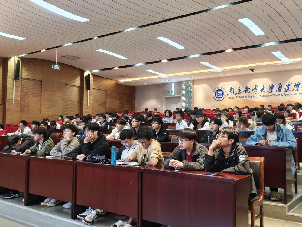 2025年11月7日,通达大讲堂在1号实验楼报告厅举行。本次讲座特邀南京邮电大学陈建飞教授担任主讲嘉宾,围绕“大学生课外创新竞赛攻略”展开深入探讨,同时邀请2025年全国大学生电子设计竞赛国家二等奖获得者脱碧莲同学分享参赛经验,全院200余位师生参加活动。