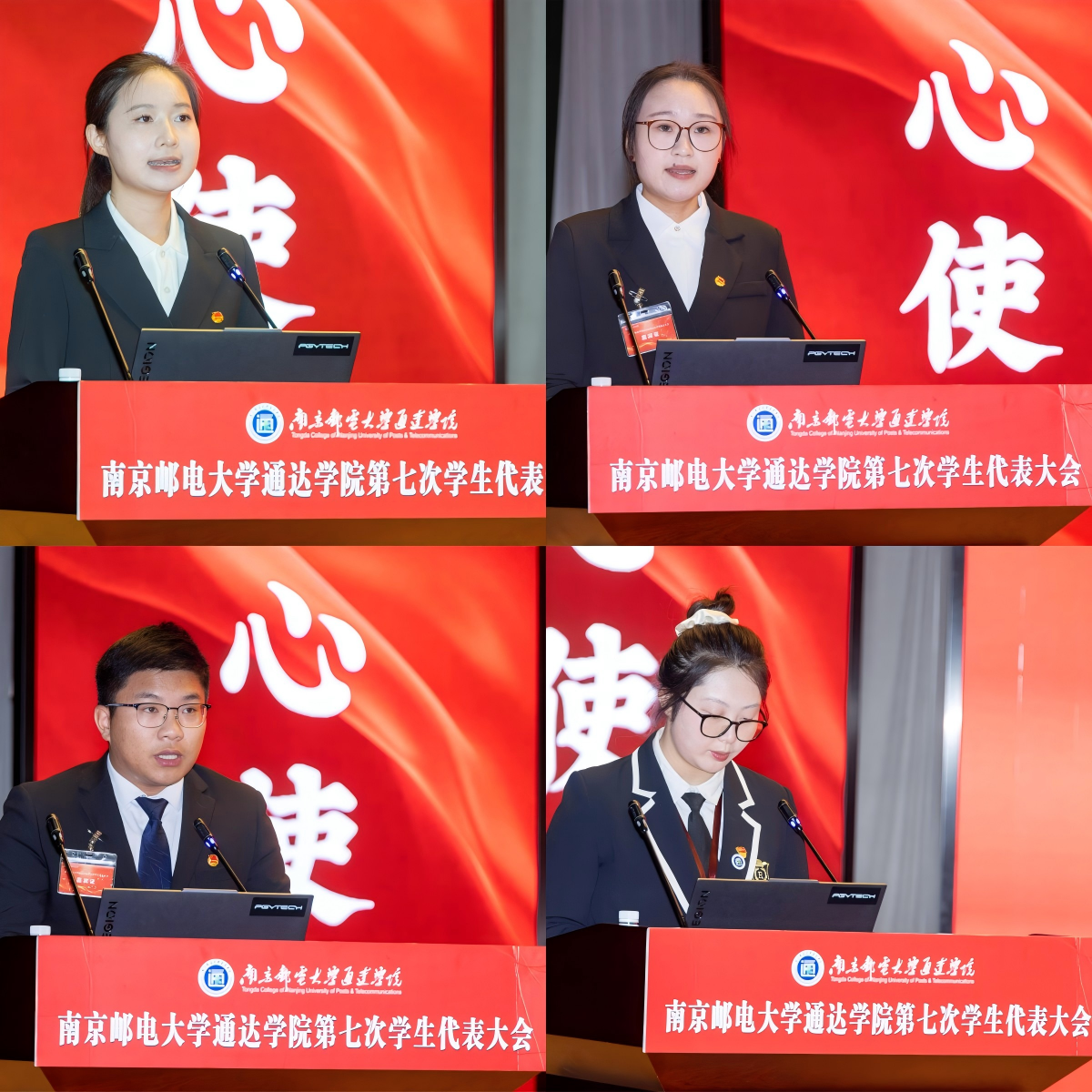 12月10日,学院第七次学生代表大会在大学生活动中心礼堂顺利召开。学院党委书记赵允玉,院长沈建华,副院长张伟,党委副书记兼副院长刘伟,南京邮电大学学生会主席高其雅,扬州市学生联合会驻会执行主席张子骁,扬州大学学生会主席宋吕祥和兄弟高校的代表们、第七次学生代表大会全体代表出席本次开幕式。