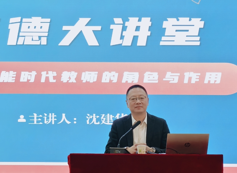 12月10日下午,我院在实验楼报告厅举办第四期“师德大讲堂”活动,学院院长沈建华以“人工智能时代教师的角色与作用”为主题,为全院教职工带来了一场兼具理论深度与实践指导的专题讲座。