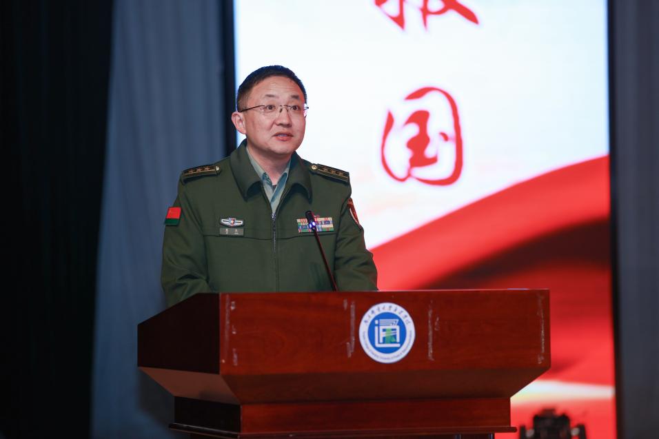 仪式在庄严的国歌声中正式拉开帷幕。刘伟代表学院发表致辞,向光荣入伍的新兵表示热烈祝贺,向支持国防事业的家长与征兵工作人员致以崇高敬意,并介绍了学院近三年来征兵工作所取得的成效。他勉励新兵牢记嘱托、锤炼意志、淬炼成钢,以实际行动为军旗增辉、为家乡添彩、为母校争光,同时表示学院将持续深化国防教育,加强军地校协同合作,为强军事业输送更多高素质人才。