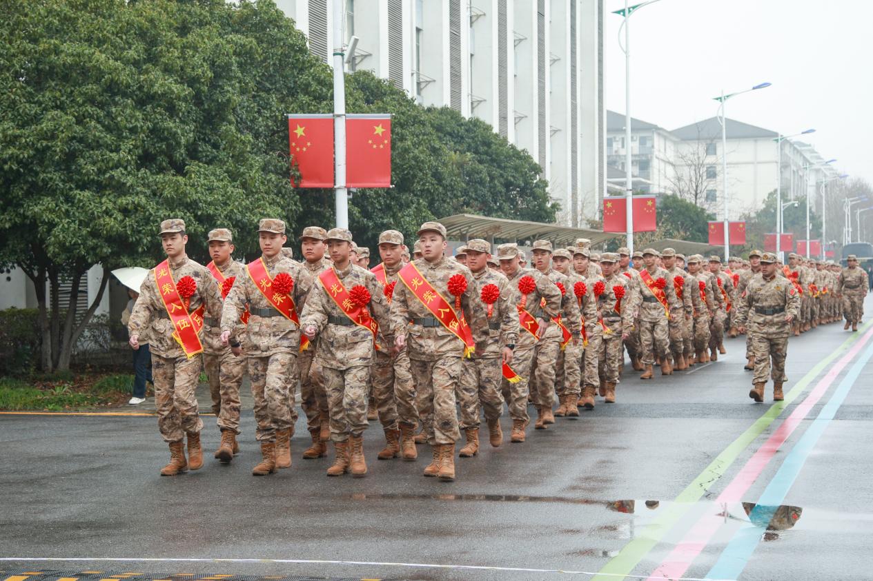 仪式尾声,全场起立齐声高唱《中国人民解放军军歌》,嘹亮歌声响彻礼堂,为新兵的军旅征程献上最诚挚的祝福。欢送仪式在激昂的旋律中圆满落幕。