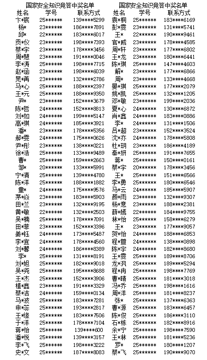 中奖学生名单