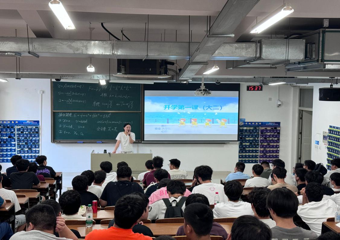 为引导大二学生以饱满的精神状态迎接新学期、明确新目标、规划新未来,9月16日,2024级电气工程及其自动化专业在扬教3108教室开展了内容丰富、形式多样的“开学第一课”教育活动。活动由琚琪琪老师主持,全体同学参加。