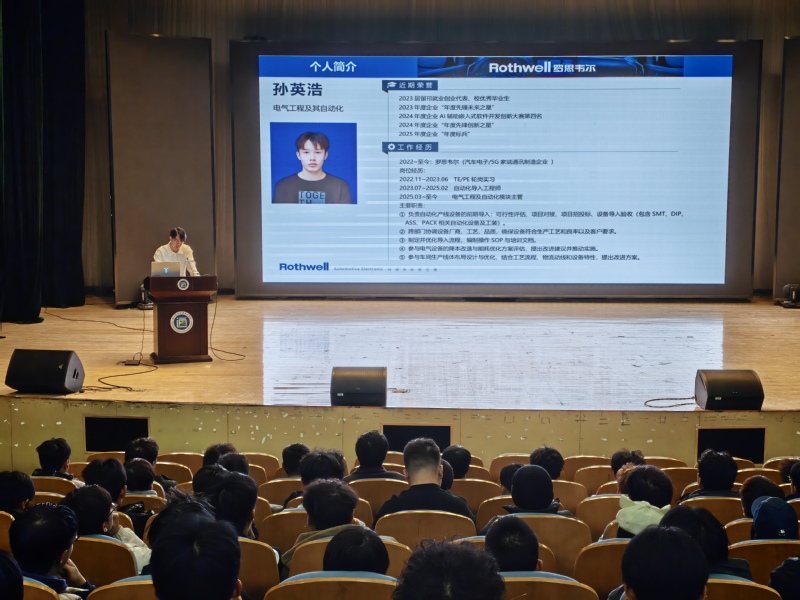 宣讲会上,孙英浩结合自身求职与工作经历,向同学们娓娓道来。大四上学期修完核心课程后,他通过校园招聘向罗思韦尔公司投递简历,在学校组织的企业参观活动中,深入了解了公司文化与发展前景,经多轮交流后最终选择入职该企业,并在企业内完成本科毕业论文。期间,他在工程部多个模块进行轮岗实习,积累了丰富的实践经验,毕业时成功定岗为自动化工程师,今年已经晋升为电气工程及自动化主管,全面负责电气、工装、自动化三大模块工作。针对大一新生普遍关心的专业学习与就业方向问题,孙英浩梳理了大学四年核心课程,并强调了基础课程的重要性。建议同学们重点攻克核心课程,筑牢知识根基。