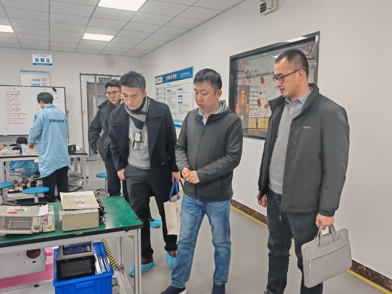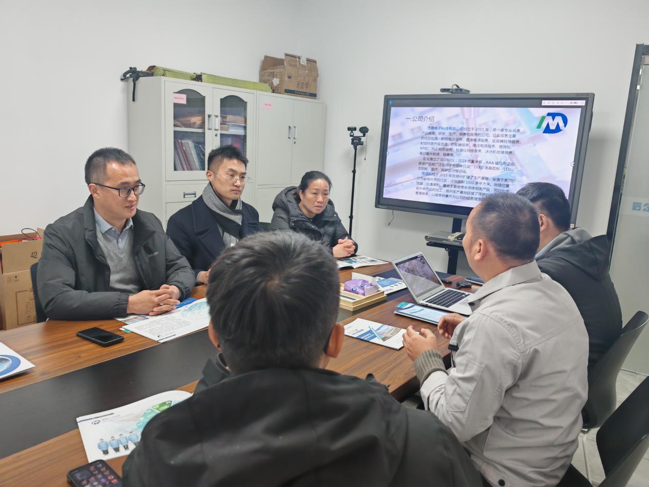 在扬州茂德电子科技有限公司的走访中,企业生产与技术负责人带领学院老师们参观了研发中心与部分生产线,展示了公司在电子元器件、精密制造等领域的核心产品与技术。