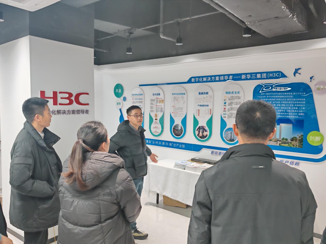 在新华三集团,学院老师们参观了企业展厅,深入了解其在云计算、大数据、数字化解决方案等领域的创新成果与行业领先地位。新华三集团相关负责人介绍了企业的校园招聘计划、岗位要求及员工发展体系。