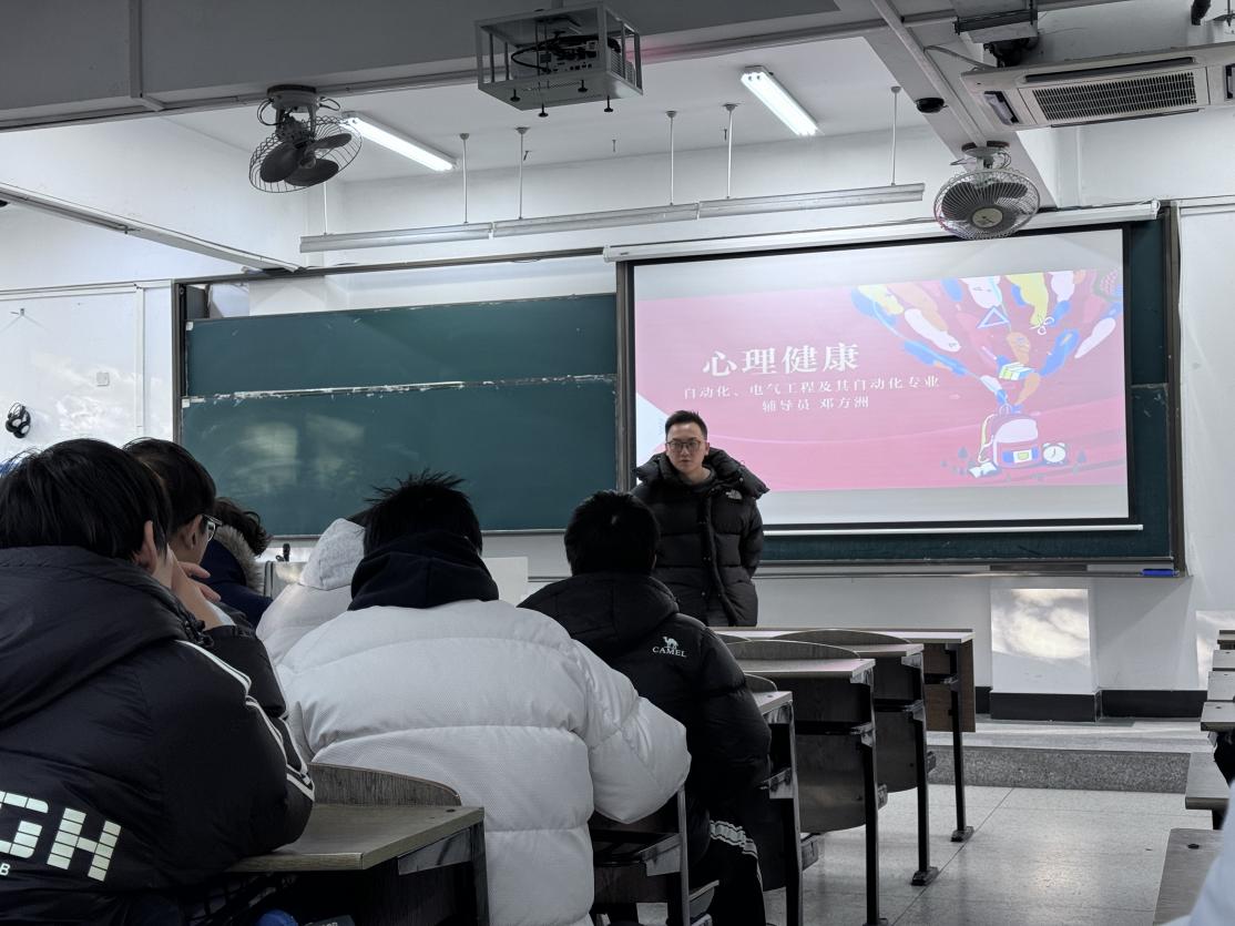 12月16日上午,2024级自动化专业全体学生同学在扬实1208召开了心理安全健康主题班会,会议由辅导员邓方洲老师主持。本次班会的主要内容是希望同学要时刻关注自己的心理健康,有压力时需要及时寻求老师的帮助。