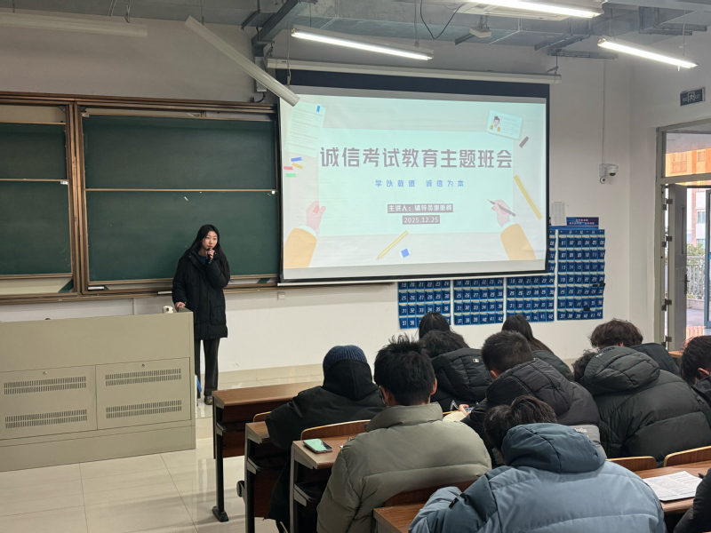 为营造公平公正的考试环境,强化学生诚信意识,端正考风考纪,12月25日,电气工程学院辅导员谢昕晔在扬教3401教室面向自动化、人工智能专业全体学生召开了诚信考试主题教育班会。班会由辅导员谢盺烨主持,2025级自动化、人工智能专业全体学生共同参与。。
