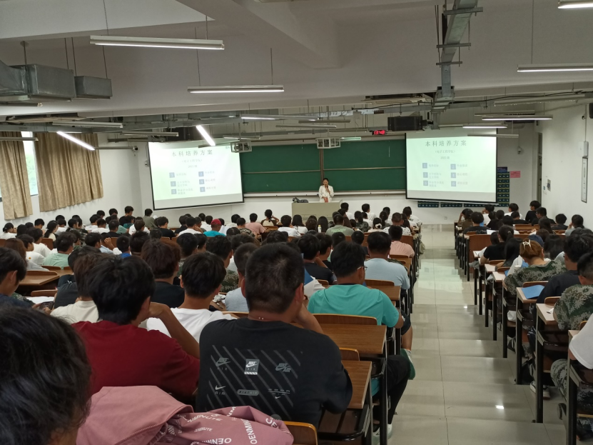 电子工程学院于2025年9月24日举办了电子科学与技术专业培养方案解读会,以帮助2025级新生进一步了解自身专业设置、树立专业思想,做好未来四年的学习规划。南京邮电大学朱先军老师担任培养方案解读人,全体新生参加会议。