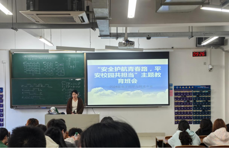 为筑牢校园安全防线,提升学生安全防范意识与自我保护能力,营造平安、和谐、文明的校园环境,10月28日,2024 级电子科学与技术专业开展 “安全护航青春路,平安校园共担当” 主题班会。本次班会由辅导员束月月老师主持,全体同学参加。