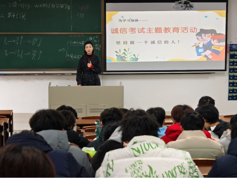 为进一步树立学生正确的考试观念,增强诚信应试意识,营造求真务实的考试氛围,在期末考试来临之际,2024级光电信息科学与工程、集成电路设计与集成系统专业于12月23日在扬教3204开展诚信考试主题教育活动。此次活动由辅导员徐梦婷老师主持,两个专业学生参加。