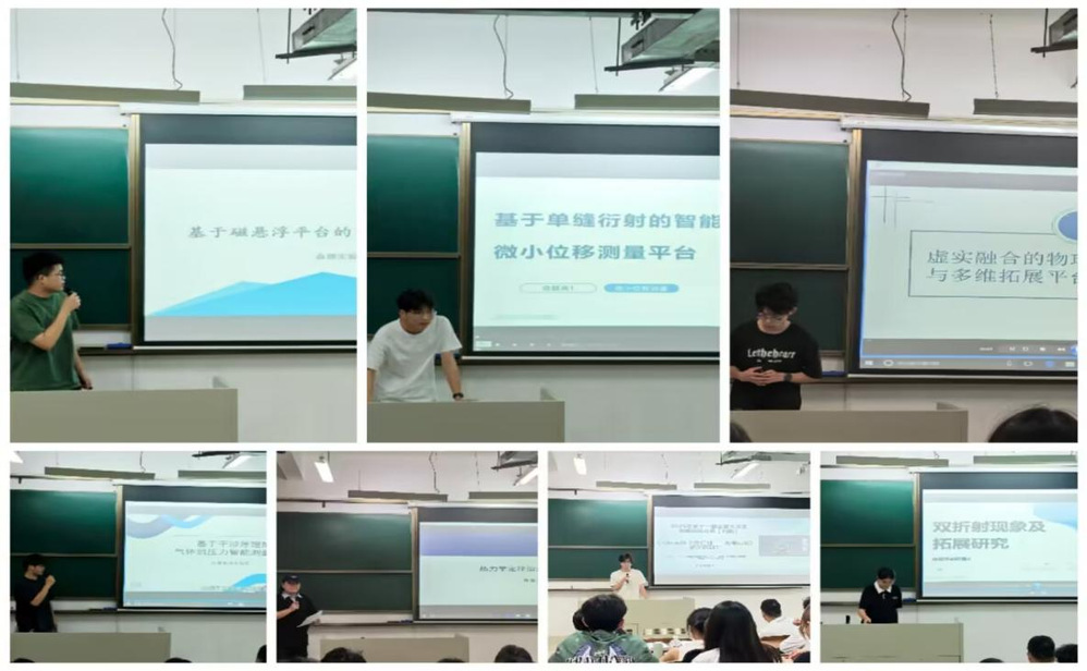 在比赛过程中,参赛学生表现出较高的专业素养与饱满的精神风貌。物理实验讲评环节,选手们精神抖擞、表达流畅,不仅把复杂的物理原理讲解得清晰明了,还巧妙地将实验演示与互动设计相结合,精准把控课堂节奏。面对评委的即兴提问,他们也能逻辑清晰、从容不迫地作答,充分展现出扎实的教学基本功与应变能力。创新作品展示环节,各队伍分工明确、配合默契,从作品的设计理念、物理原理应用,到实验数据处理与创新点分析,均阐述得条理清晰。部分自选课题类作品更是聚焦实际问题,将物理知识与生活场景、科技应用相融合,展现出较强的创新思维与实践探索能力。