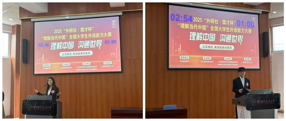 近日,2025年“外研社·国才杯”“理解当代中国”全国大学生外语能力大赛江苏赛区演讲赛项评选结果揭晓。我院精心选拔并派出的2名参赛选手,凭借出色的语言表达能力和扎实的思辨功底,在与省内70余所高校选派的173名包含英语专业的本科生及研究生的激烈竞争中脱颖而出,分别荣获江苏省二等奖和三等奖。我院选手的获奖人数及获奖比例在省内同类院校中并列第一,再次彰显了我院人才培养的显著成效。