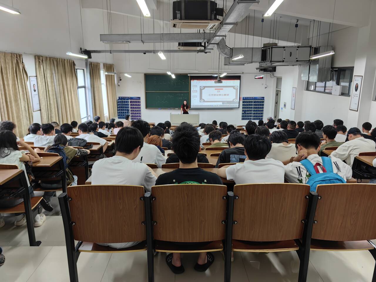 最后,武老师强调,大四是承前启后的关键阶段,同学们要完成从在校生到准职业人或研究生的角色转变,做好学业与职业的无缝衔接。她期望全体同学能团结一致,互帮互助,共享信息资源,共同营造积极向上、奋发有为的毕业班氛围,为大学生活画上圆满句号,为美好未来开启崭新篇章。本次主题班会既是毕业前的动员令,也是新征程的导航仪。通过精准的指导与温暖的鼓励,有效助力2022级软件工程、软件工程(嵌入式培养)、物联网工程(嵌入式培养)专业学子坚定信心、认清方向、矢志奋斗,以昂扬的姿态奔赴山海,用拼搏书写青春的精彩答卷。