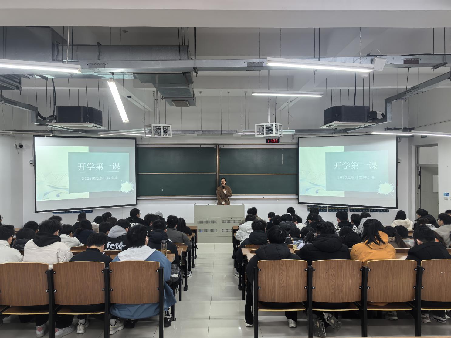 3月10日上午,2023级软件工程专业分别于扬教3305、扬教3306教室召开了“开学第一课”主题班会。会议由王巾雄老师主持,全体同学参加。
