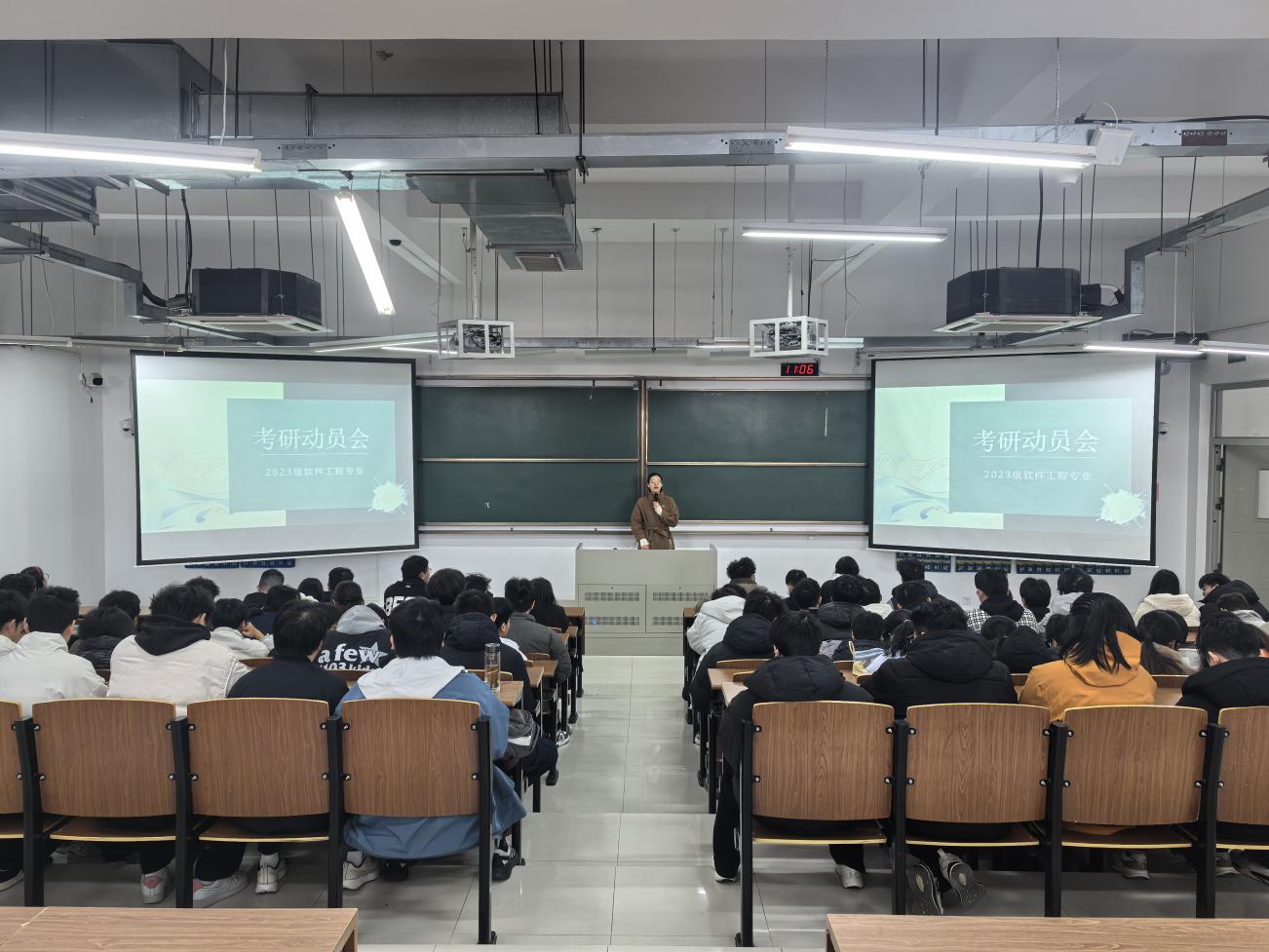 3月10日上午,2023级软件工程专业分别于扬教3305、扬教3306教室召开了考研主题班会。班会由辅导员王巾雄老师主持,全体同学参加。