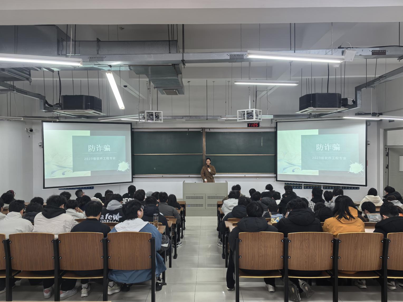 3月10日上午,2023级软件工程专业分别于扬教3305、扬教3306教室开展了“防诈骗”主题班会,会议由辅导员王巾雄老师主持,全体同学参加。