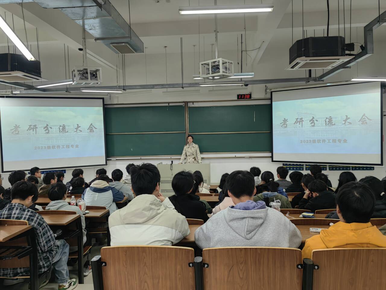 为帮助同学们明确考研方向,科学规划学业路径,4月23日上午,2023级软件工程专业在扬教3306教室开展考研分流大会,本次会议由辅导员王巾雄老师主持,特别邀请了蒋玲慧书记、陈正凯老师以及两位考研成功的优秀学姐进行经验分享。
