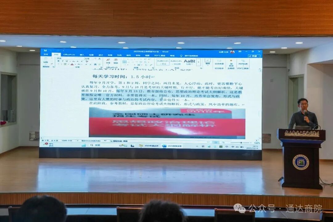 最后,唐老师还结合考研各科目的历年真题与命题趋势,详细讲解了不同题型的出题规律,包括考点分布特点、题干设置逻辑及答案指向性等核心内容。讲座内容干货满满,为备考学生提供了系统的规划思路与实用方法,受到在场同学的广泛好评。