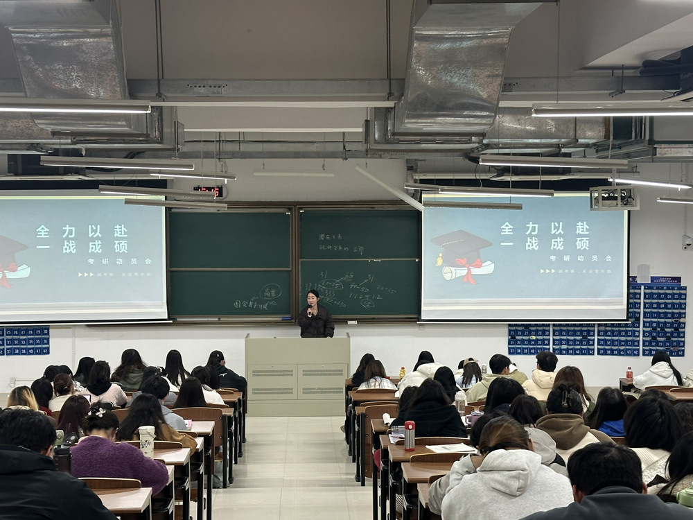 动员会上,杨老师聚焦考研这一核心主题,为同学们提供了全面而深入的指导。她首先强调了科学规划的重要性,建议同学们要早定位、早规划、早行动,结合自身实际情况合理选择目标院校,避免好高骛远或妄自菲薄。