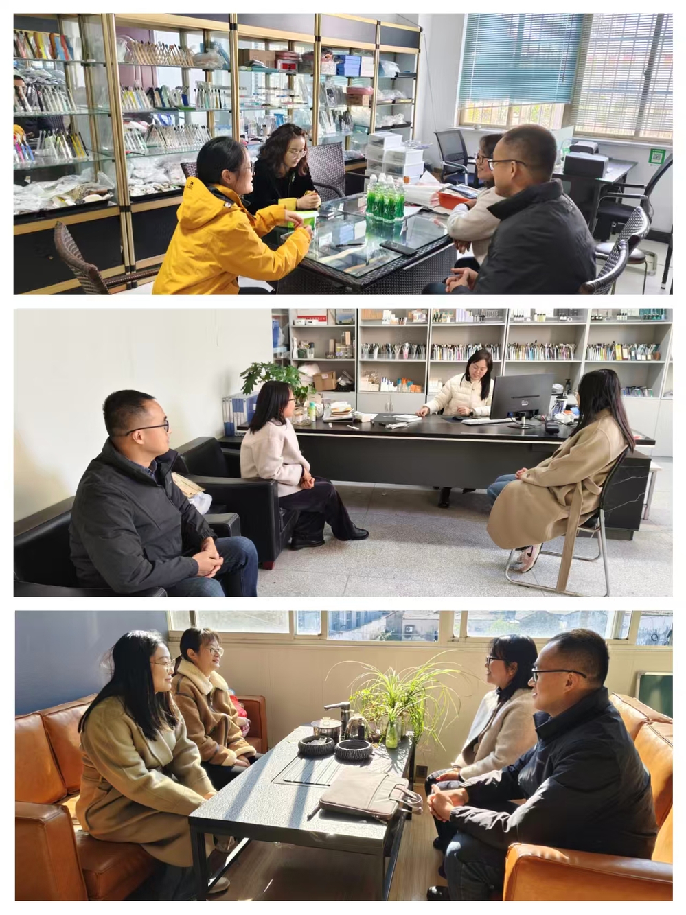 在各企业座谈会上,梁一丹书记首先代表学院向三家企业的热情接待表示感谢,并详细介绍了商学院的办学特色、专业设置、人才培养模式。她表示,学院始终坚持以市场需求为导向,聚焦高素质应用型人才培养,此次走访旨在深入了解行业发展趋势与企业用人标准,推动校企在学生实习实践、就业推荐、人才联合培养等方面的深度合作。三家企业相关负责人分别介绍了公司的发展历程、业务布局、核心产品及未来发展规划,并结合行业发展现状,详细阐述了企业的人才需求方向、岗位设置及任职要求。企业负责人一致表示,当前市场竞争日趋激烈,企业对具备扎实专业功底、较强实践能力和良好职业素养的高素质人才需求迫切,商学院培养的毕业生专业适配度高、综合能力突出,希望以此次访企拓岗为契机,与学院建立长期稳定的合作关系,吸纳更多优秀毕业生加入企业,为企业创新发展注入新鲜血液。