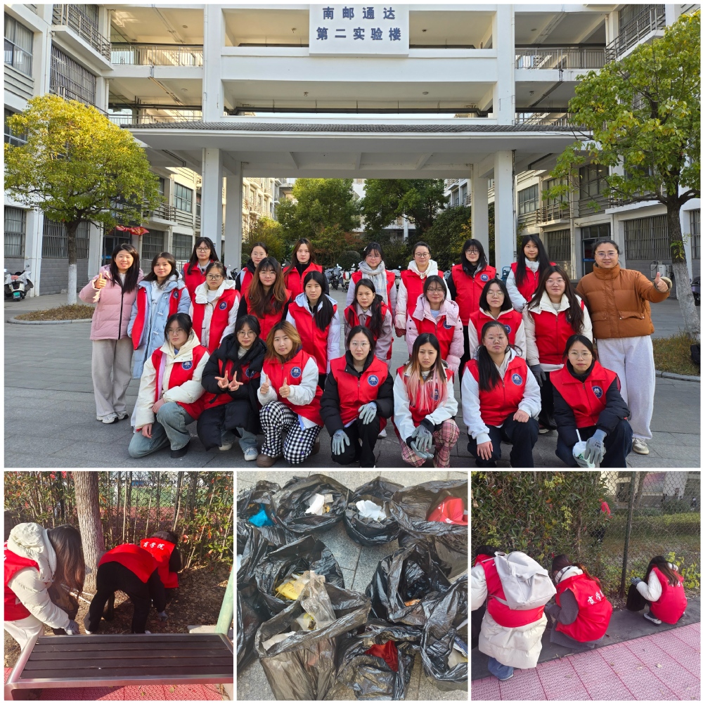 校园环境维护现场,学子们身着统一服装、手持清洁工具,在实验楼2号楼周边开展垃圾与烟头捡拾行动。大家弯腰俯身,不放过任何卫生死角,用脚步丈量责任,用双手美化校园。从草丛中的白色垃圾到路面的零星烟头,每一处清理都体现对校园环境的珍视,每一次弯腰都彰显青年一代的责任担当,以实际行动践行“绿水青山就是金山银山”的环保理念。