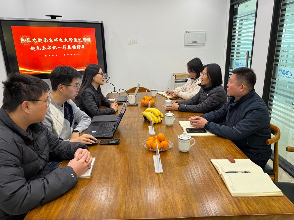 为扎实推进学校访企拓岗专项工作,精准对接企业人才需求,拓宽毕业生就业路径,12月5日,南京邮电大学通达学院党委书记赵允玉、商学院院长闫志龙、党总支书记梁一丹及毕业班辅导员一行,前往江苏艾教智能科技有限公司进行校企合作交流。