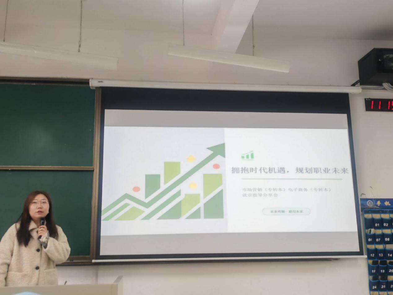为助力市场营销(专转本)、电子商务(专转本)专业同学把握就业机遇,明晰职业发展方向,4月1日,辅导员朱亚茹老师在扬教3201教室开展了以“拥抱时代机遇,规划职业未来”为主题的就业指导分享会。