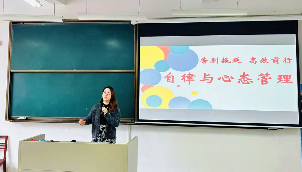 围绕“自律养成”与“心态调适”两大核心,吉老师结合两个专业的学科特点展开精准指导。针对广告学专业创意实践多、创作场景灵活、文案与设计任务碎片化的特质,引导同学们运用“目标拆解法”,将大创作任务拆解为可落地的小目标,借助番茄工作法把控创作节奏,避免因拖延产生的时间焦虑;针对大数据管理与应用专业实训强度大、数据建模与理论备考双重压力的实际情况,分享“任务优先级排序”“专注力提升小技巧”,帮助同学们高效统筹学习与实训任务。同时,吉老师向同学们普及了情绪觉察、正向宣泄、同伴互助等心理调适方法,鼓励大家正视焦虑、接纳不完美,通过规律作息、户外轻运动、与师长同伴倾诉等方式消解内耗,主动构建“自我关怀+同伴支持”的心理防护网。