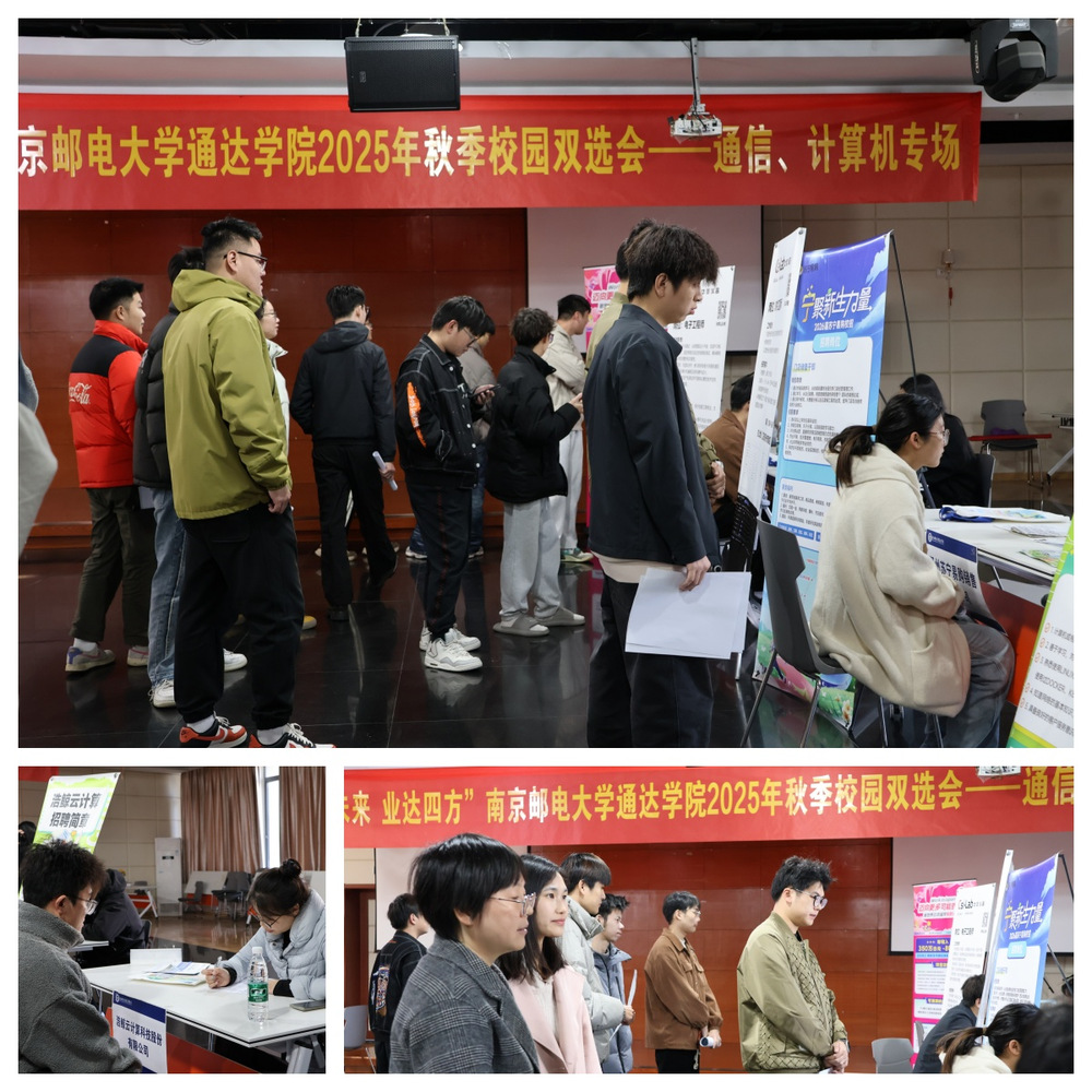 11月25日下午,由通信工程学院和计算机工程学院联合举办的“职通未来 业达四方”毕业生专场招聘会在大学生活动中心二楼教工之家顺利举行。本次招聘会聚焦电子信息等相关专业领域人才需求,吸引了行业内10家优质企业参会,为2026届大四学子搭建了高效就业对接平台。通院党总支书记司艺、毕业班辅导员也来到招聘会现场,与用人单位和毕业生深入交流,了解市场需求,指导学生就业。