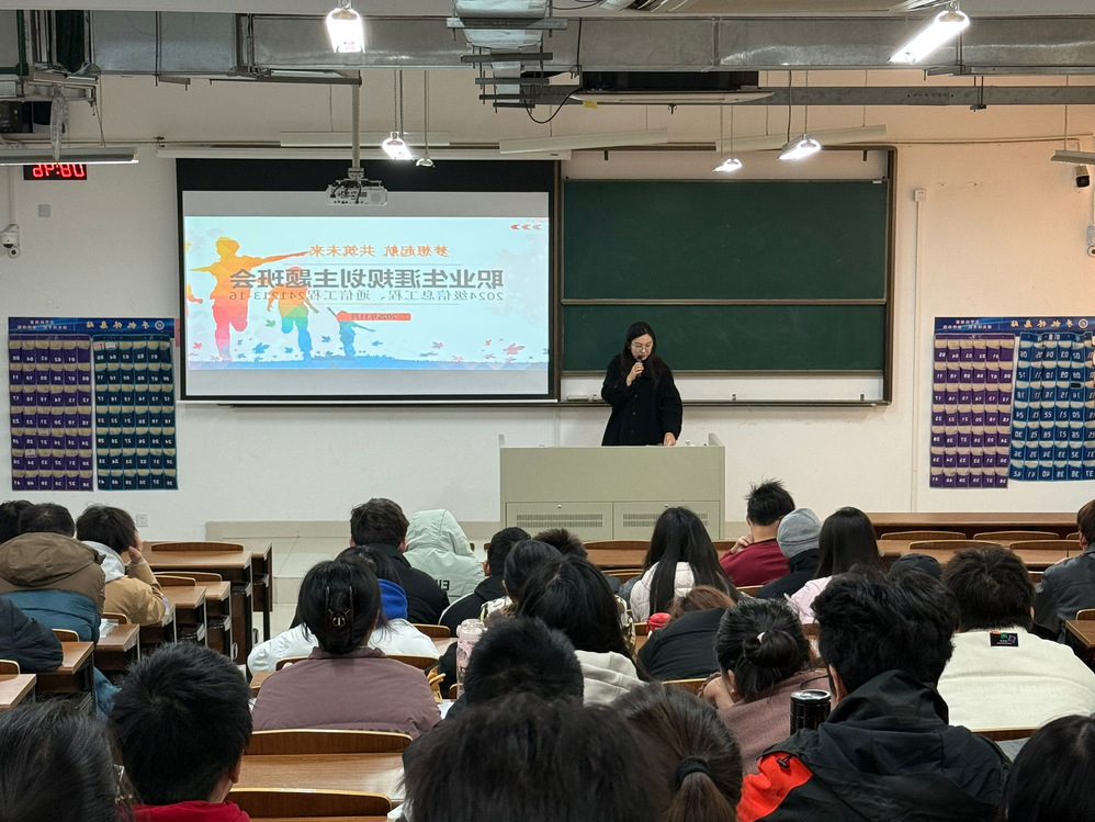 为帮助大二学子破解考研与就业选择的迷茫,明晰职业发展路径,为未来成长筑牢基础,11月27日,2024级通信工程241213-16班和信息工程专业在扬教3302开展“锚定目标,逐光前行”职业生涯规划主题班会。