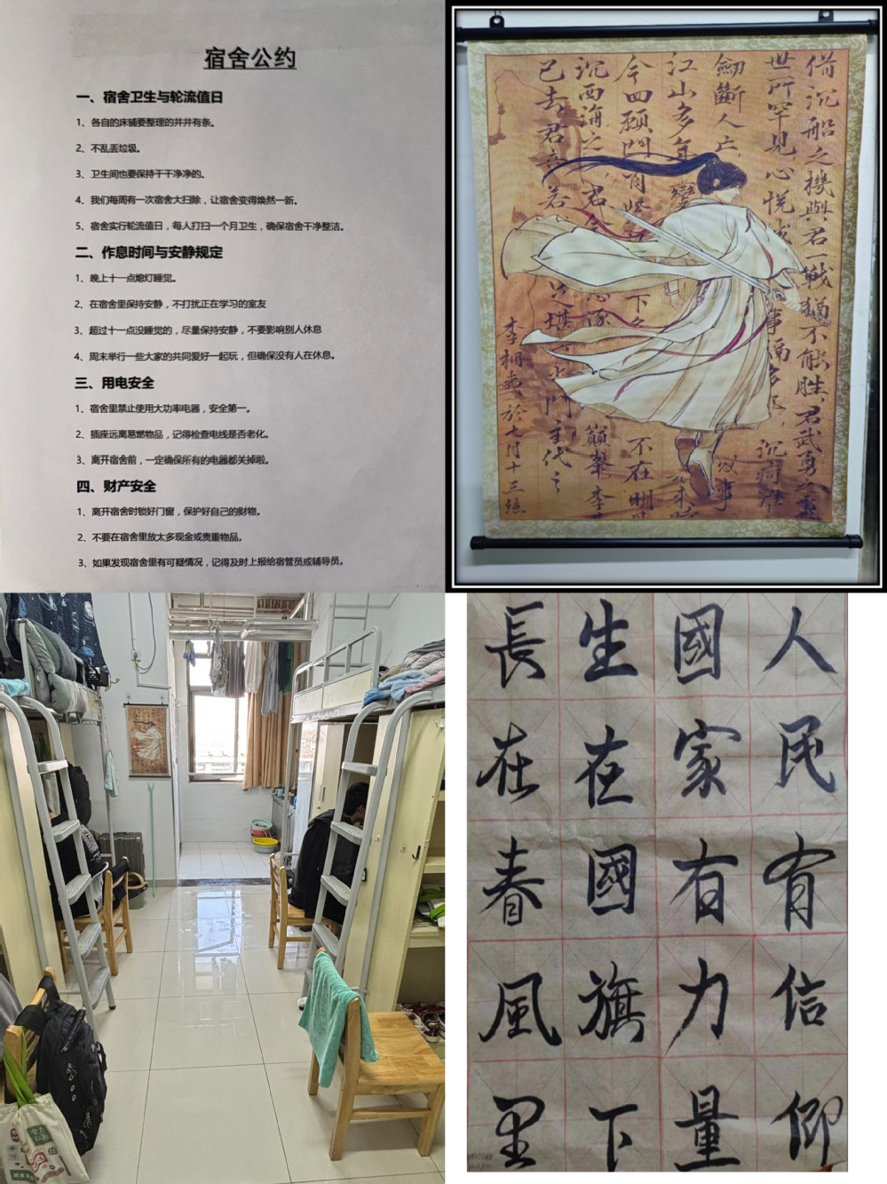 会后,全体学生迅速行动,掀起宿舍内务清扫的热潮。各寝室长带领组员分工协作:扫地、拖地、擦拭家具、整理书桌书本、归置衣物和生活用品,不放过任何卫生死角;针对阳台杂物堆积、卫生间异味等问题,学生们主动采用“分类清理、彻底冲洗、通风晾晒”的方式逐一解决。部分宿舍在完成基础清扫后打造专属文化氛围:用贴纸装饰墙面,制作“宿舍文明公约”手绘海报,让宿舍不仅干净整洁,更富有内涵。